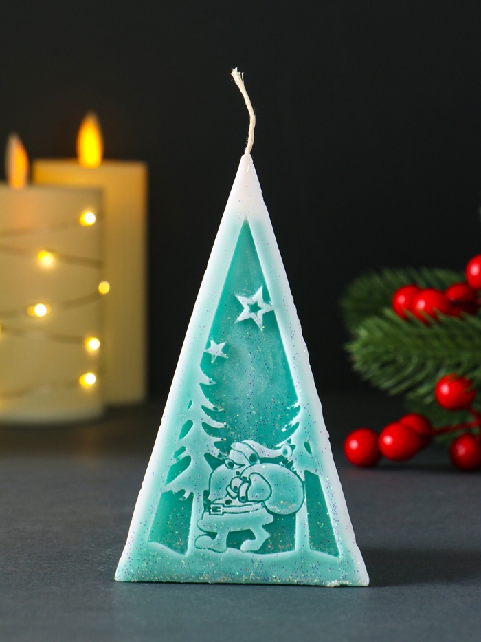Свеча новогодняя пирамида «Дед Мороз», 6×6.5×12 см, тиффани