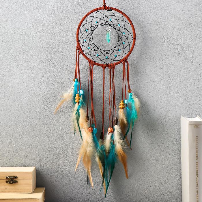 Ловец снов "Перья павлина с подвесками и бусинами" 40х11 см