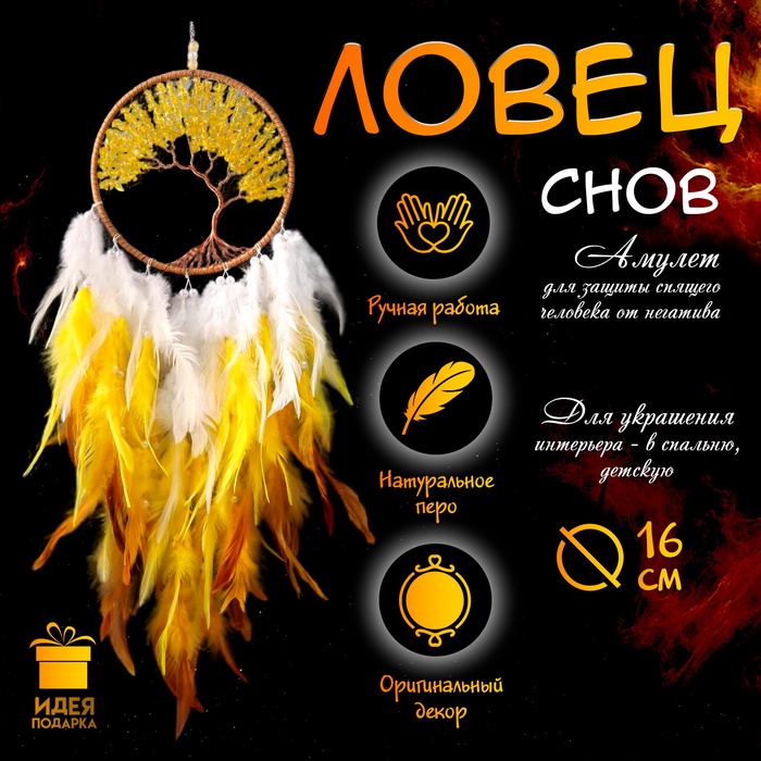 Ловец снов «Дерево», жёлтый, d=16 см, 70×16 см
