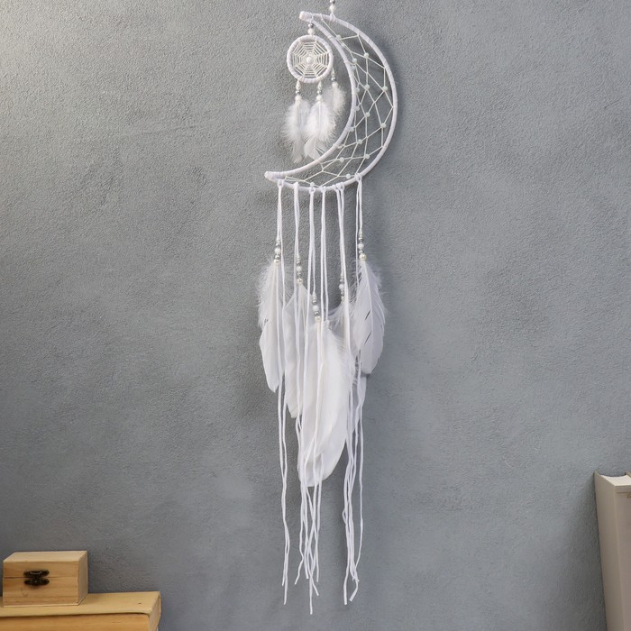 Ловец снов двойной "Месяц" белый d=5 см, d=20 см 75х20 см