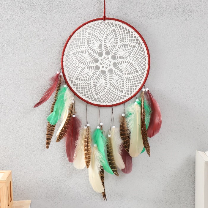 Ловец снов "Кружево Цветок" зелёно-коричневый 24х45 см