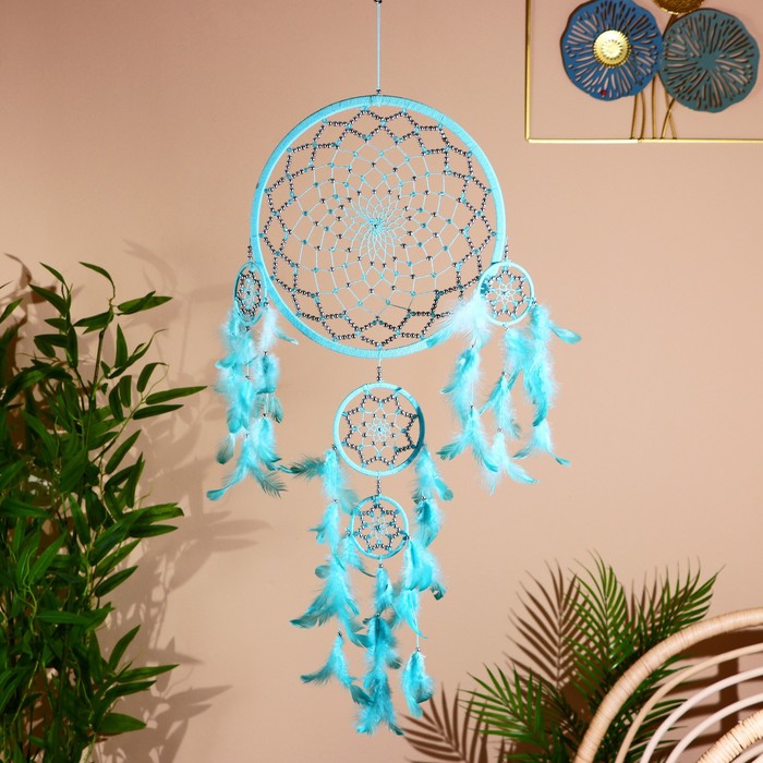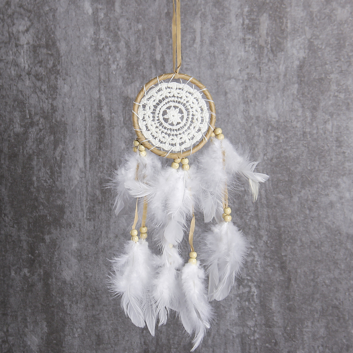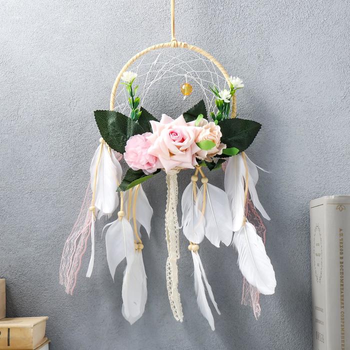Ловец снов амулет «Цветы и белые перья», 52×16 см