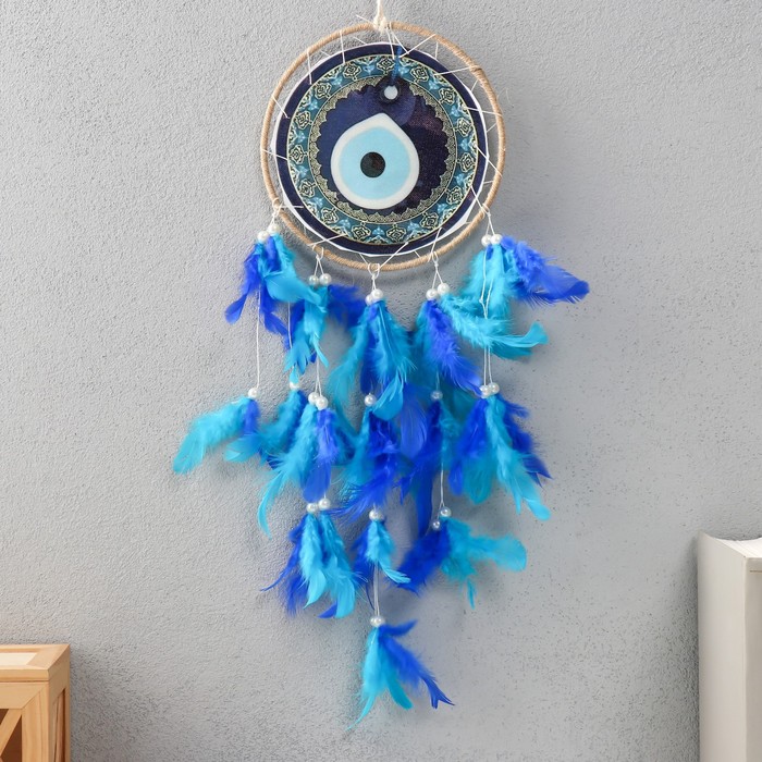 Ловец снов от сглаза "Сине-голубые перья" 60х15х0,7 см
