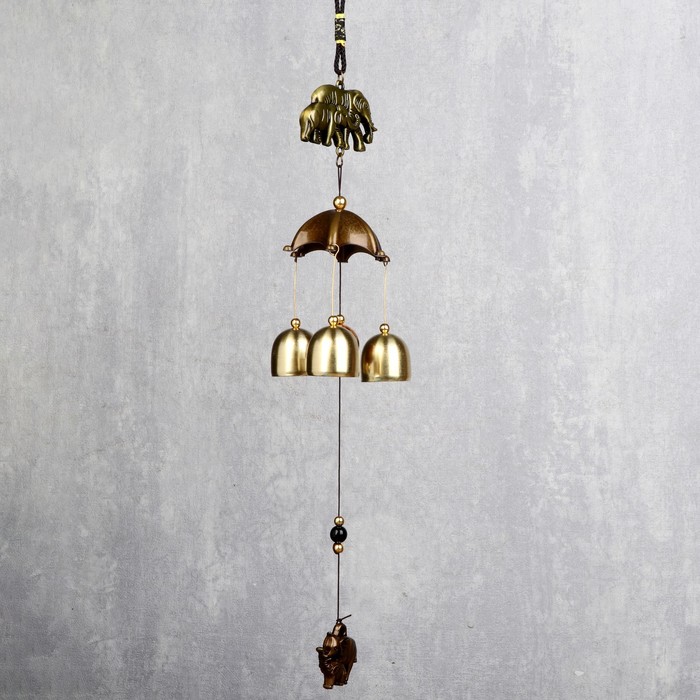 Музыка ветра металл "Семейство слонов" 3 колокольчика 1 фигурка 38 см