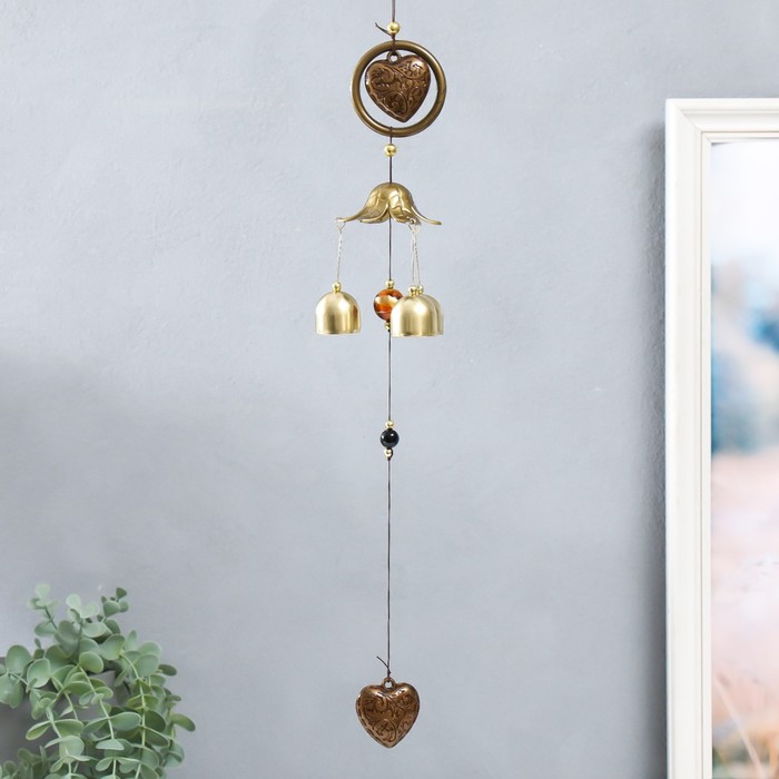 Музыка ветра «Сердечко с розой в круге», металл, 3 колокольчика, 1 фигурка, 40 см