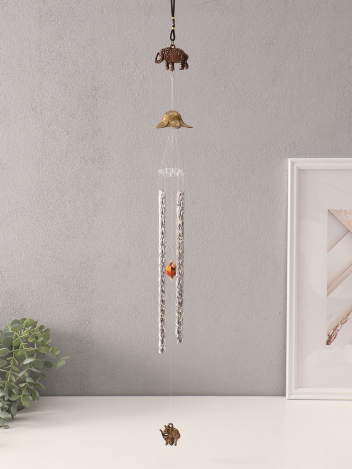 Музыка ветра металл, пластик "Ожерелье и слон" 4 трубки 5 колокольчиков 54 см
