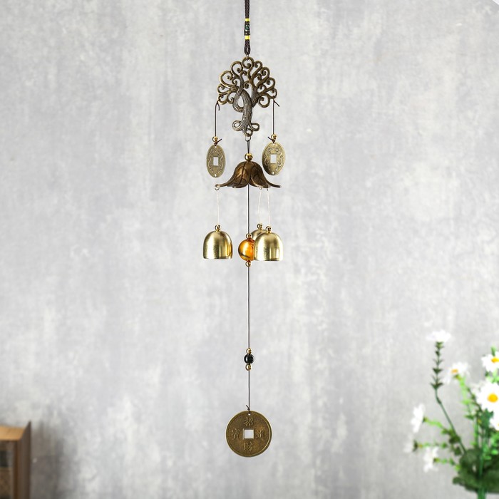 Музыка ветра металл "Дерево" 3 колокольчика, 3 монеты 45 см