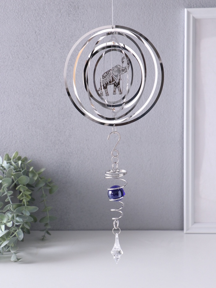 Ветряной колокольчик металл 3D "Индийский слон" с бусиной 13,5х13,5х31 см