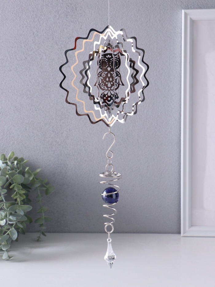 Ветряной колокольчик металл 3D "Ажурный филин" с бусиной 13,5х13,5х31 см