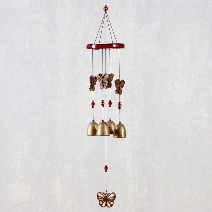 Музыка ветра «Бабочки», 4 колокольчика, металл, дерево, 55 см