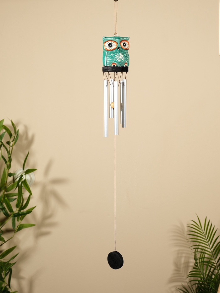 Музыка ветра "Совёнок" дерево, алюминий, 7х6х60 см, цв. зелёный