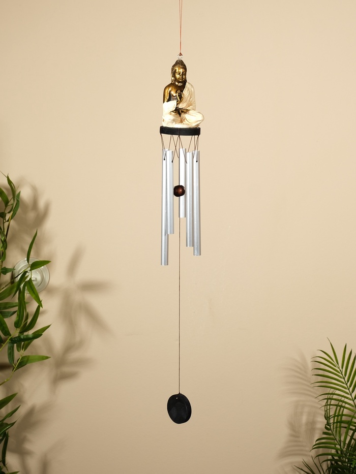 Музыка ветра "Будда" дерево, полирезин, алюминий 8х8х70 см