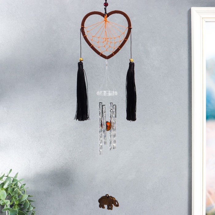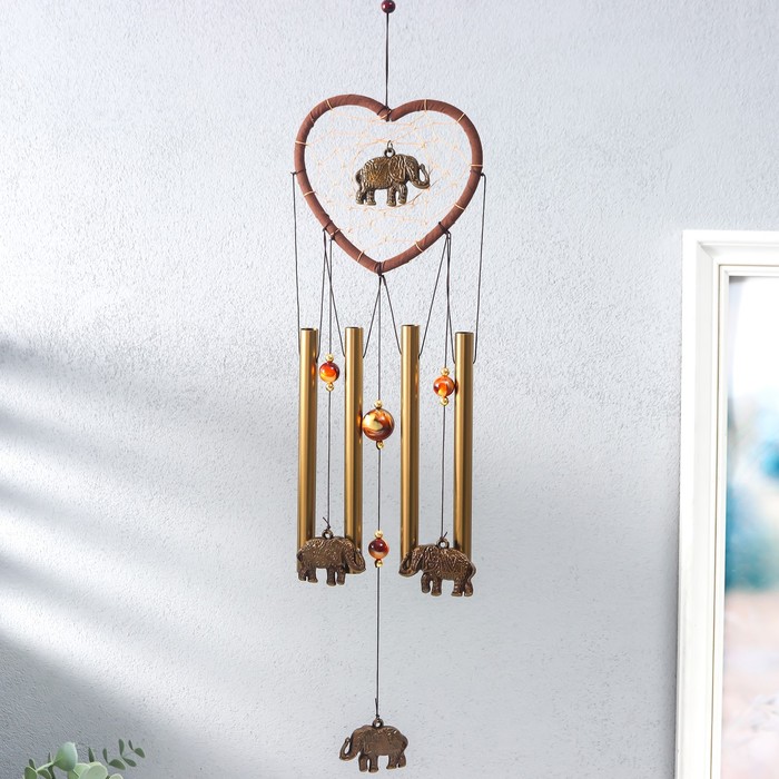 Музыка ветра с ловцом снов «Сердце с кисточками и слон», 4 трубки, d=10.5 см, длина 45 см