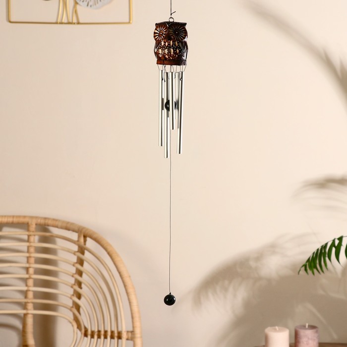 Музыка ветра "Сова с цветочками" дерево, металл 5х5х40 см