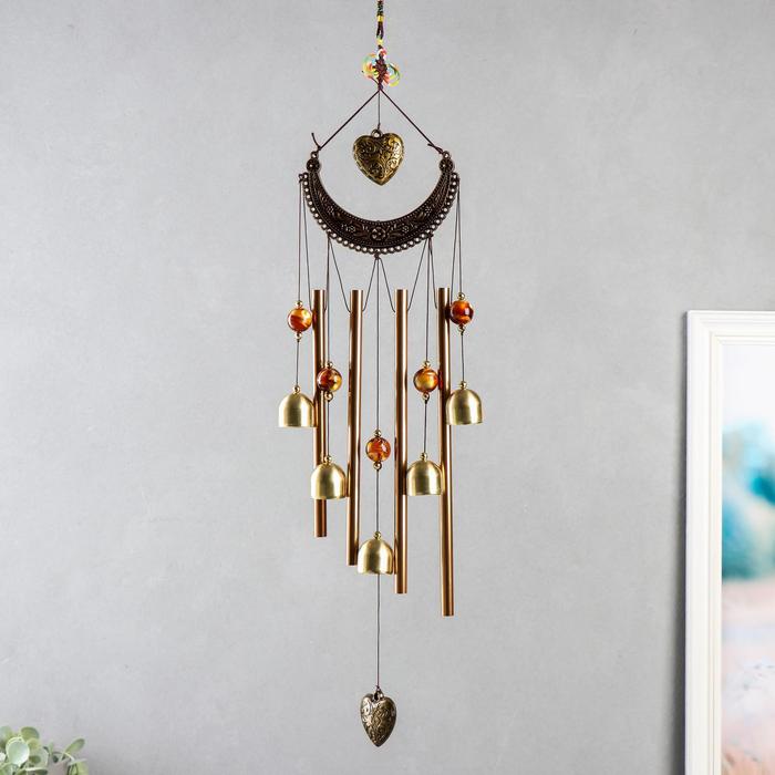 Музыка ветра «Ожерелье и сердце», металл, пластик, 4 трубки, 5 колокольчиков, 54 см