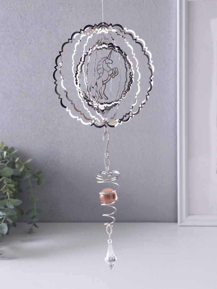 Ветряной колокольчик металл 3D "Единорог" с бусиной 13,5х13,5х31 см