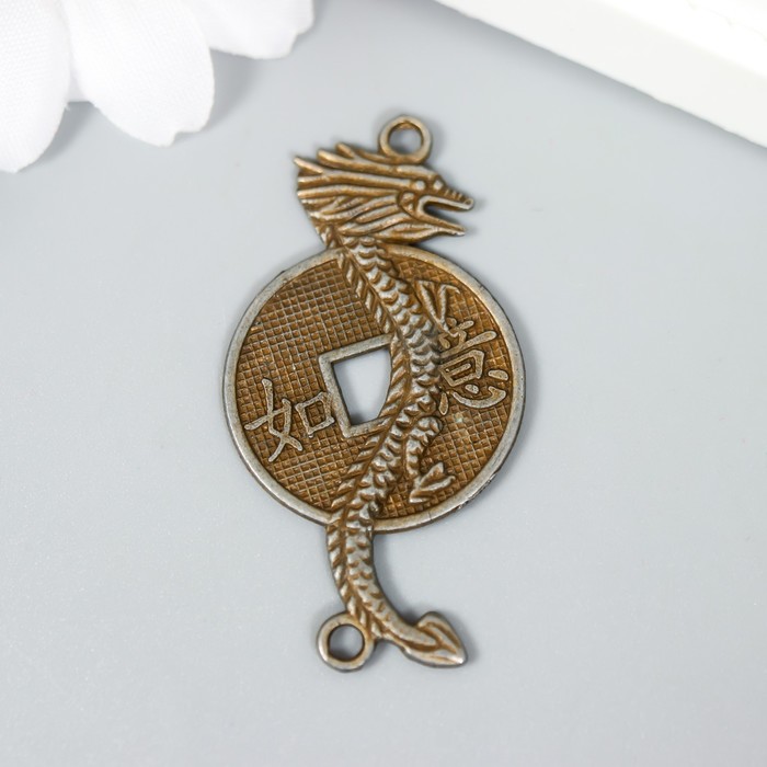 Сувенир металл подвеска "Дракон с китайской монетой" 4х2,3 см