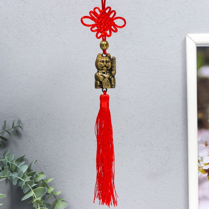 Подвеска-оберег «Манэки-нэко с узлом счастья», 24×2.7×1.8 см