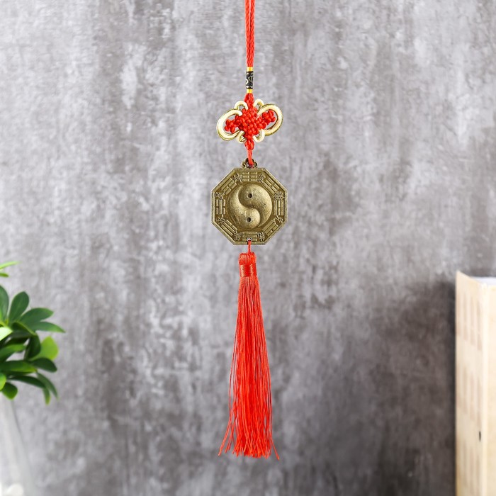 Подвеска-оберег «Монета инь-ян с узлом счастья», 35×5.5×0.5 см