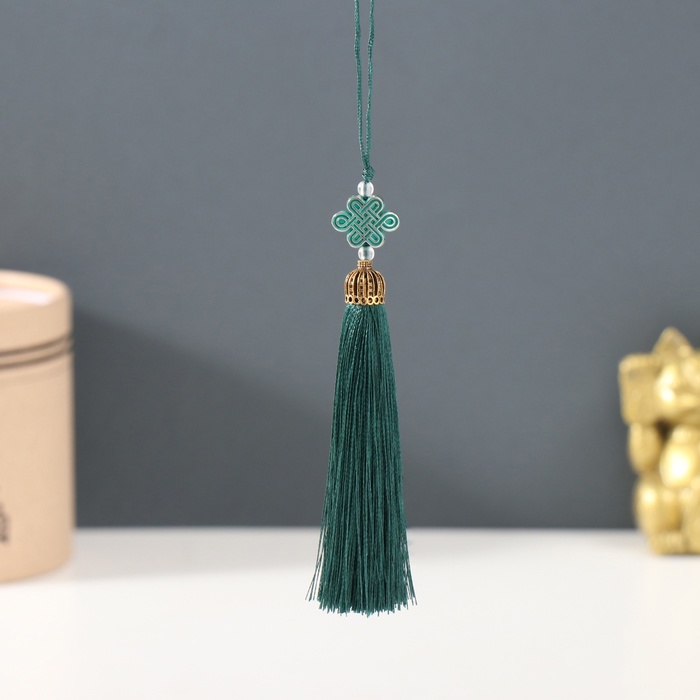 Подвеска текстиль, пластик "Узел счастья и бесконечности" тёмно-зелёная 0,7х1х9,5 см