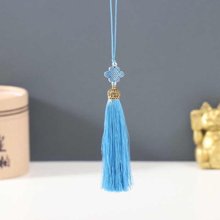 Подвеска текстиль, пластик "Узел счастья и бесконечности" синяя 0,7х1х9,5 см