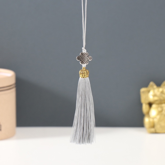 Подвеска текстиль, пластик "Узел счастья и бесконечности" серая 0,7х1х9,5 см