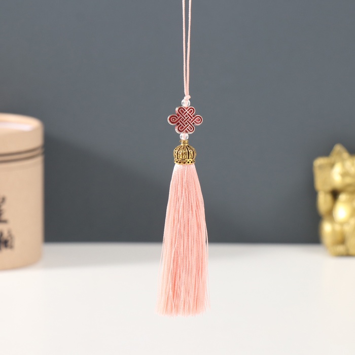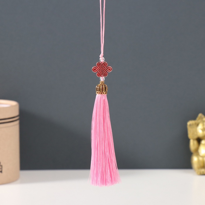 Подвеска текстиль, пластик "Узел счастья и бесконечности" нежно-розовая 0,7х1х9,5 см