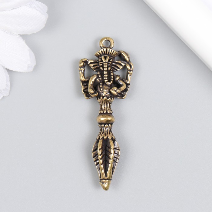 Сувенир латунь "Тибетский кинжал Пхурба с Ганешей" 4,8 см