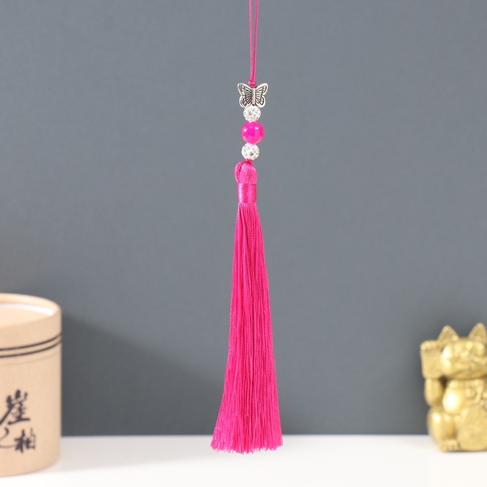 Подвеска текстиль, металл "Бабочка" фуксия 1х1,2х16,5 см