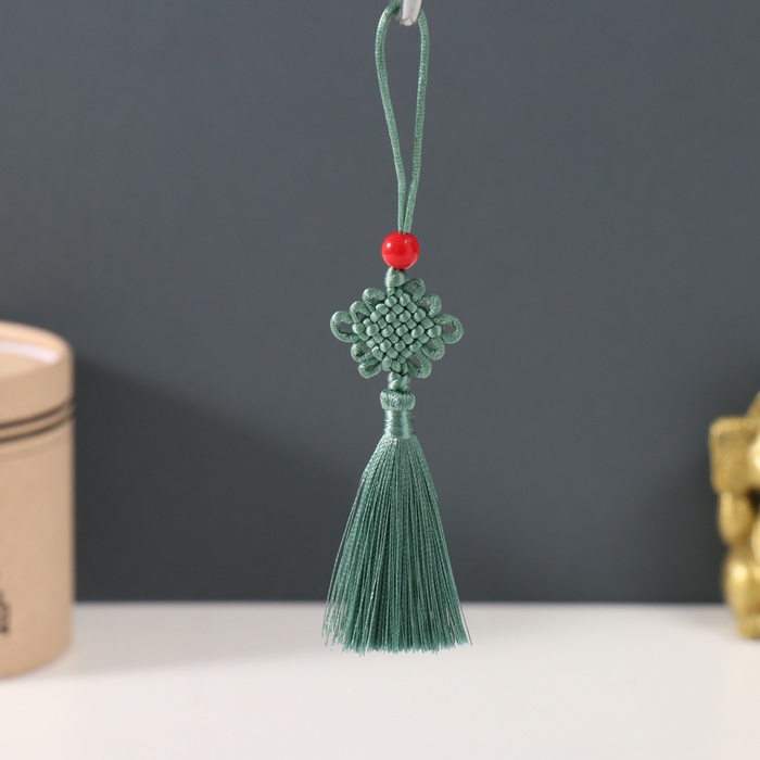 Подвеска текстиль, пластик "Узел счастья и бесконечности" зелёная 0,7х1х9,5 см