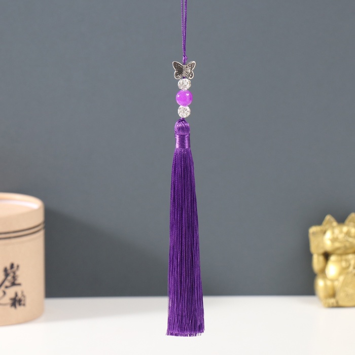 Подвеска текстиль, пластик "Кисть. Лотос" сиреневая 1,2х2,7х14,5 см