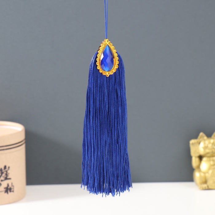 Подвеска текстиль, пластик "Кисть. Лотос" тёмно-синяя 1,2х2,7х14,5 см