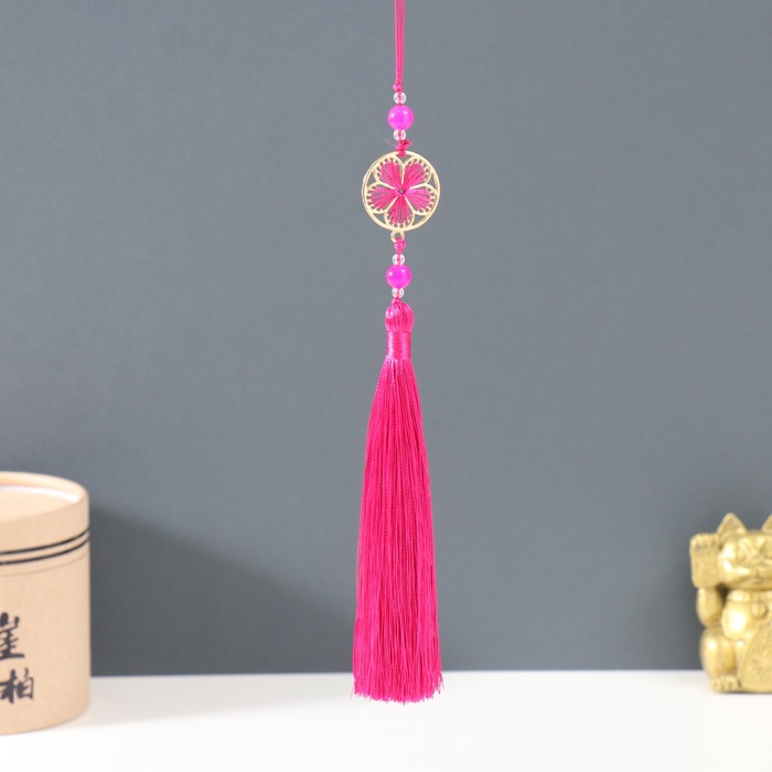 Подвеска текстиль, пластик "Китайский лев" ярко-розовая 2х4х14 см