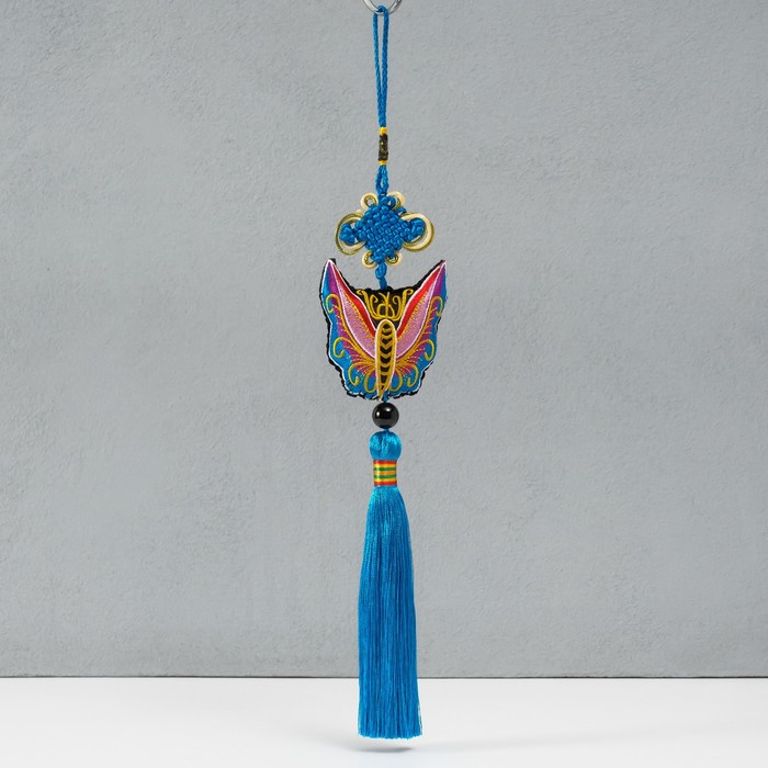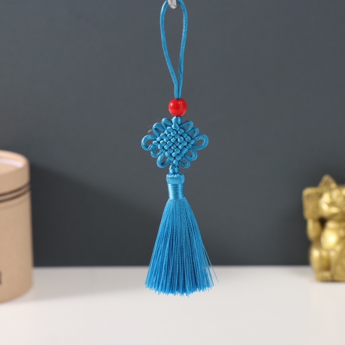 Подвеска текстиль, пластик "Узел счастья и бесконечности" голубая 8,5 см