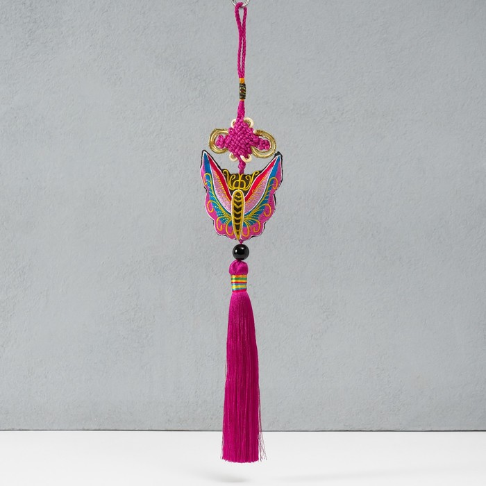 Подвеска текстиль "Бабочка" ярко-розовая 2х6,5х27 см