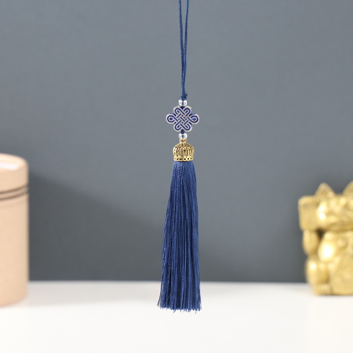 Подвеска текстиль, пластик "Узел счастья и бесконечности" тёмно-синяя 0,7х1х9,5 см