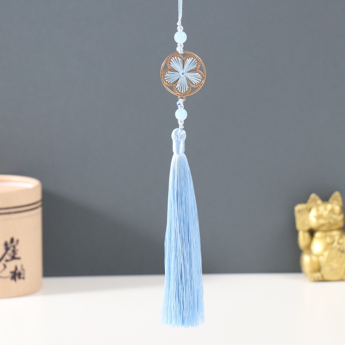 Подвеска текстиль, пластик "Кисть. Лотос" голубая 1,2х2,7х14,5 см