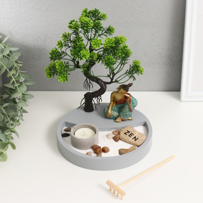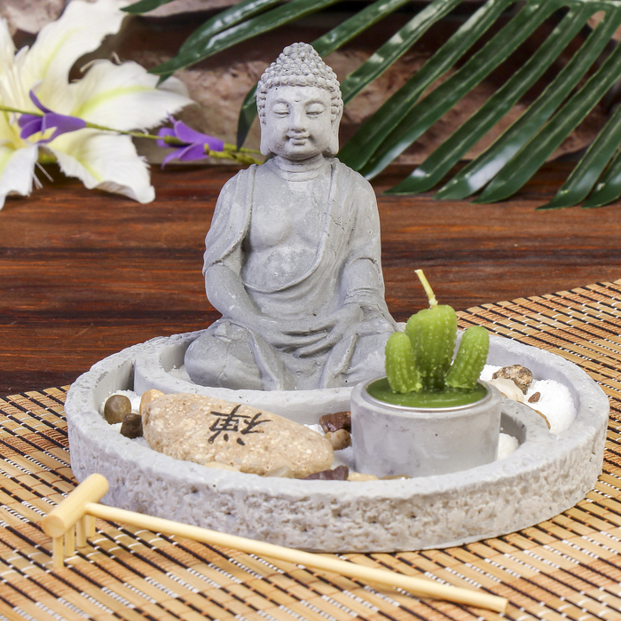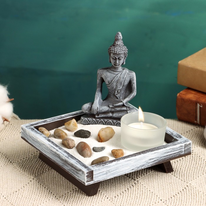 Японский сад камней настольный «Дзен. Будда в саду», со свечой, набор аксессуаров, 13×19×19 см