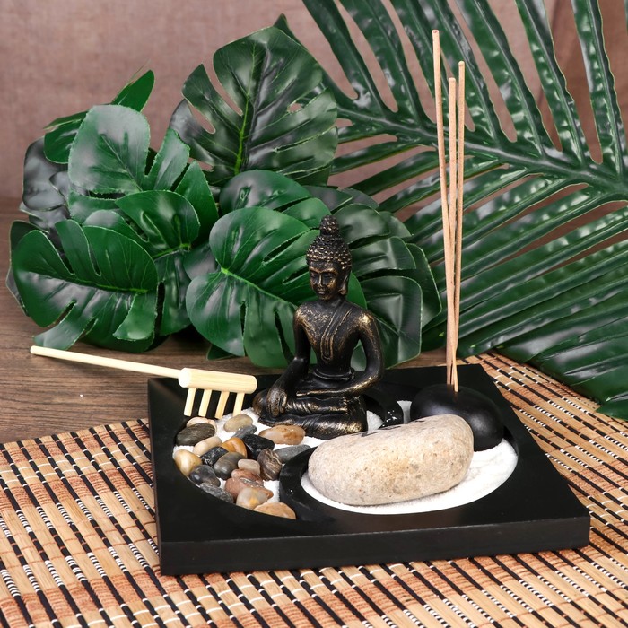 Японский сад камней настольный «Дзен. Бронзовый Будда», с набором аксессуаров, 22×15×12.5 см