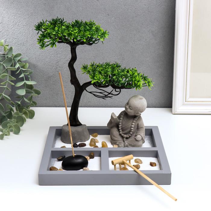 Японский сад камней настольный «Дзен. Маленький Будда у дерева в саду», с набором аксессуаров, 22.5×20×19.8 см