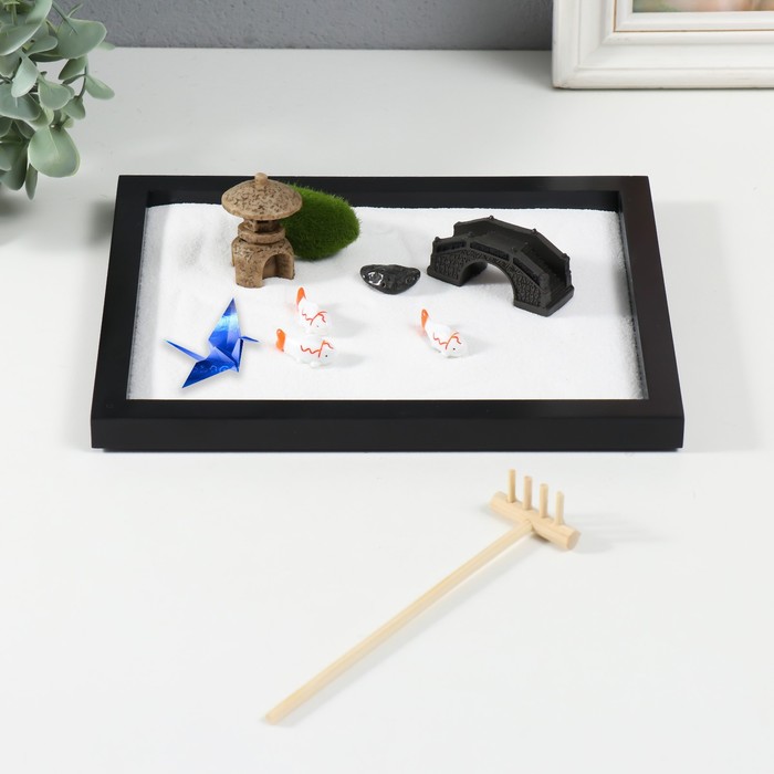 Японский сад камней настольный «Дзен. Мостик и оригами», с набором аксессуаров, 1.2×21.5×17.5 см