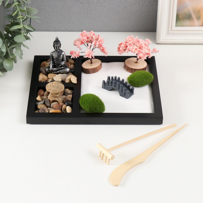 Японский сад камней настольный «Дзен. Будда с деревом», с набором аксессуаров, 1.3×21.5×17.5 см