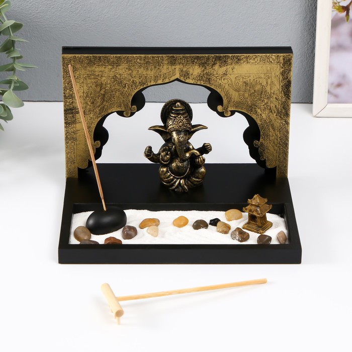 Японский сад камней настольный «Дзен. Ганеша во дворце», с подставкой под благовония, набор аксессуаров, 14×21×16 см