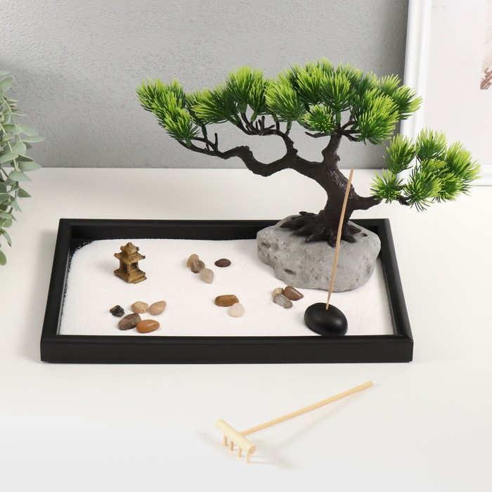 Японский сад камней настольный «Дзен. Раскидистое дерево в саду», набор аксессуаров, 20×30×18.5 см