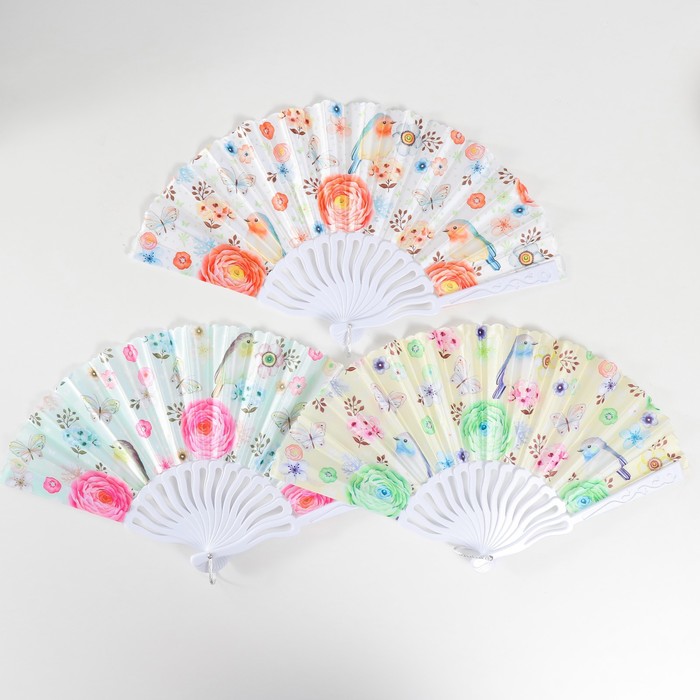 Веер складной «Птички и цветы», 23 см, МИКС