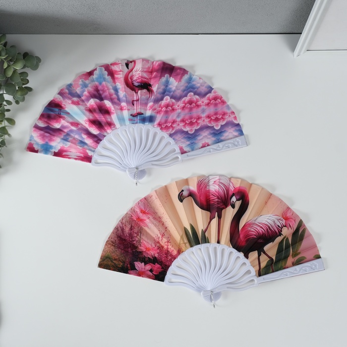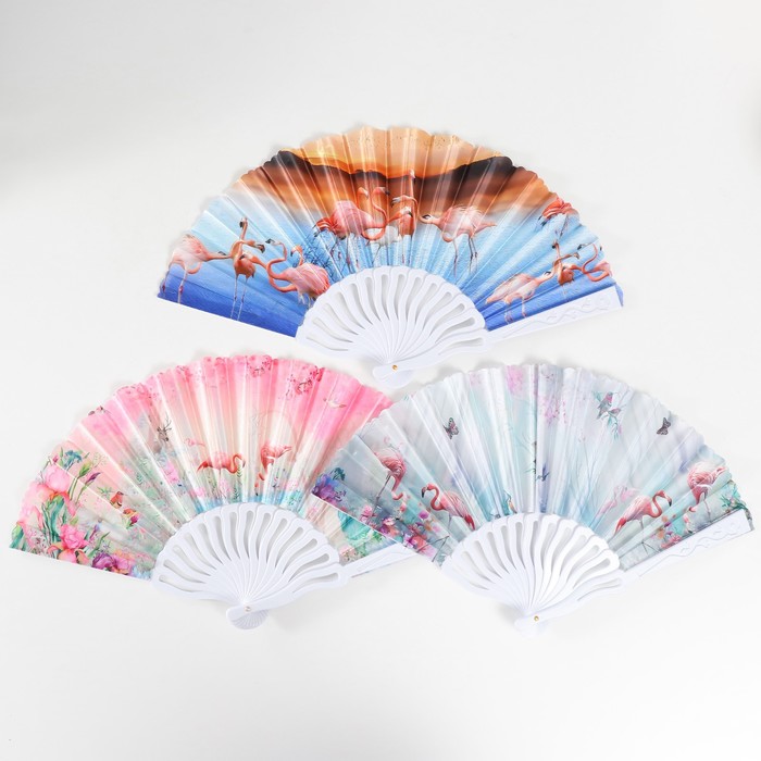 Веер складной «Фламинго», 23 см, МИКС