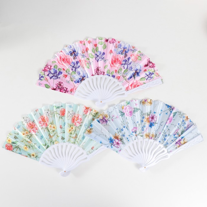 Веер складной «Цветы», 24 см, пластик, МИКС