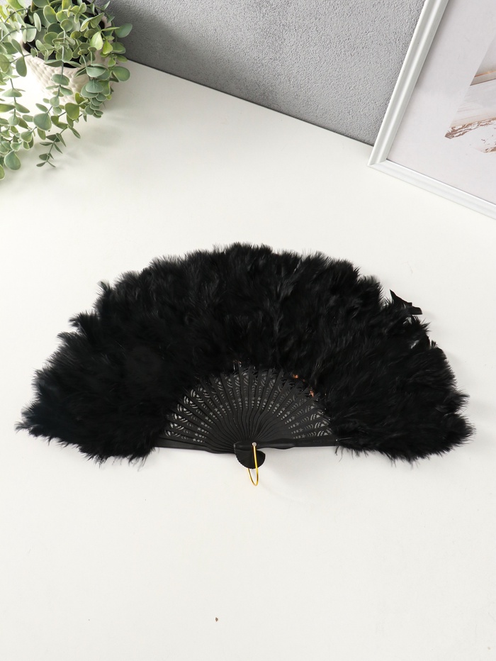 Веер складной «Чёрный перьевой», h=26 см, 25 лопастей, 3×50×26 см