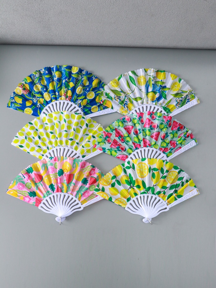 Веер складной «Россыпь лимонов», 23 см, МИКС