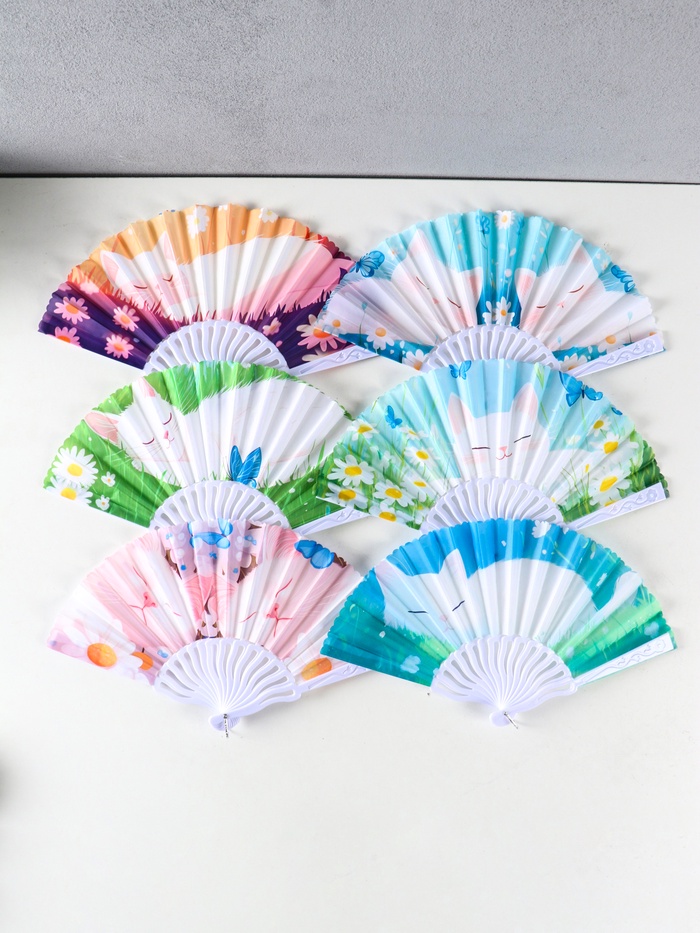 Веер складной «Спящие котики на полянке», 23 см, МИКС